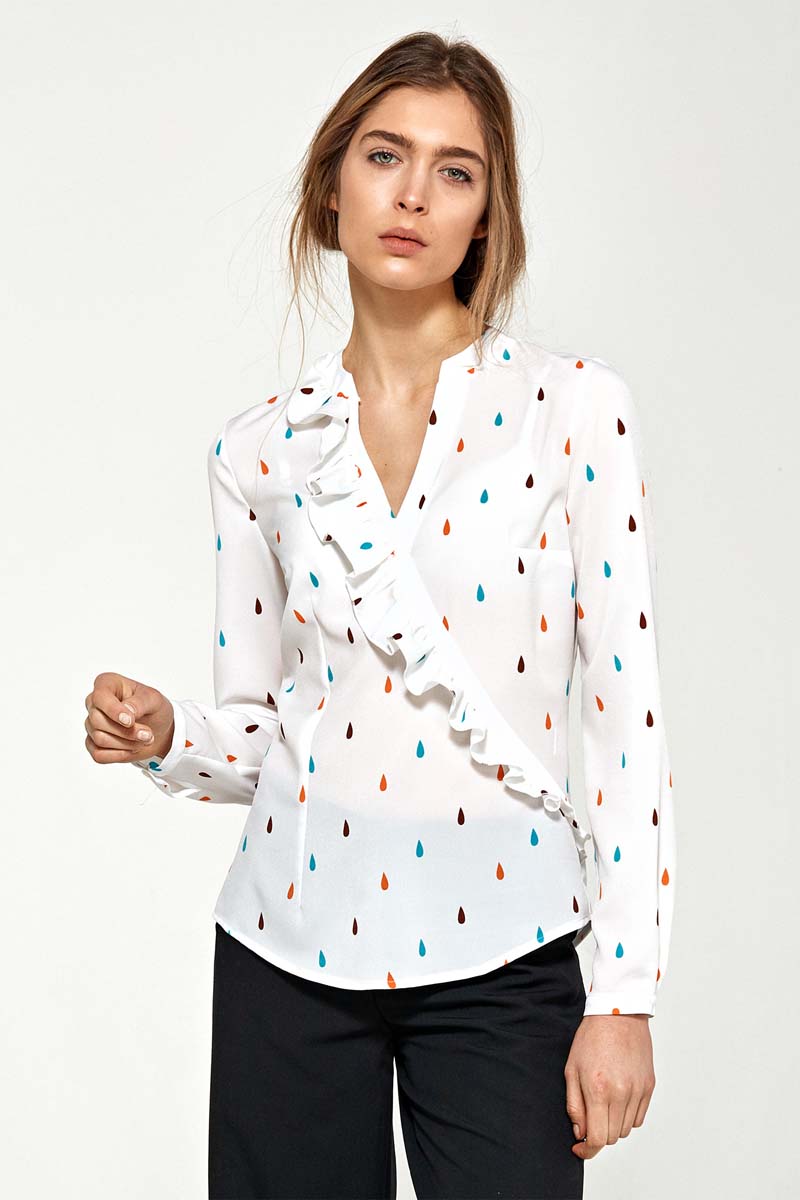 Strona głównaBluzki i bluzeczki damskieKoszulowa Bluzka w Łezki z Asymetryczną Falbanką