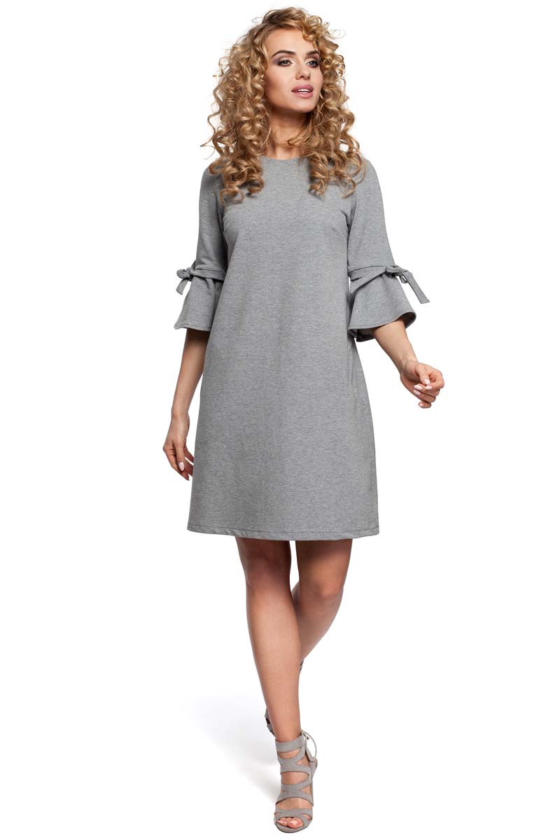Strona głównaSukienki i suknieSzara Sukienka Trapezowa z Rozkloszowanymi Rękawami